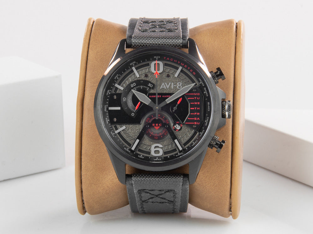 La aeronave Harrier II fue el resultado de increíbles mejoras técnicas, como el desarrollo de un fuselaje más ligero y de un ala de una sola pieza. Los Avi-8 de esta colección se inspiran en el diseño y estética de este famoso avión, destacando por su funcionalidad, visibilidad y fácil lectura y uso.