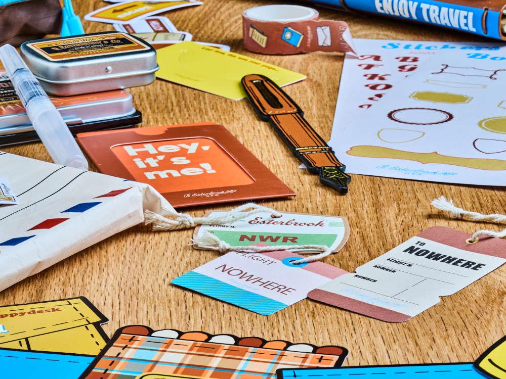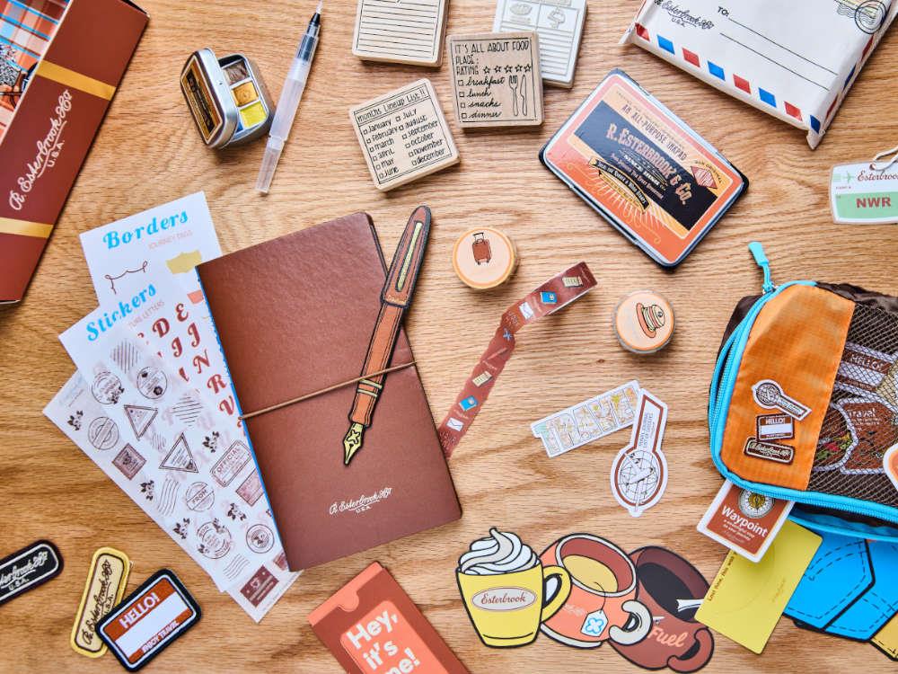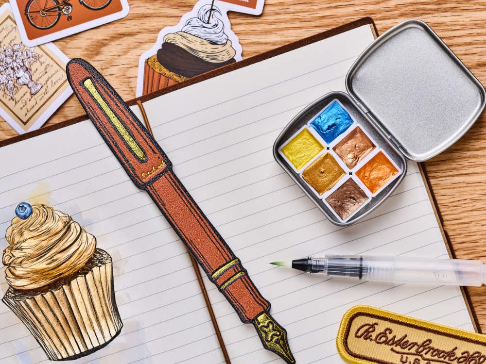 • Descubre el Esterbrook Travel Journal Workshop Set, la edición especial diseñada para amantes de la papelería, los viajes y la creatividad analógica. Inspirado por la estética vintage y el estilo cálido de Mareike Mert (@me_and_my_happydesk), este set convierte cada desplazamiento en una experiencia creativa: una maleta-estuche de diseño retro cargada de detalles, dos cuadernos compatibles con estilográfica, funda de cuero sintético, estuche de tela, sellos de madera con tinta, acuarelas, stickers, parches, washi tapes y accesorios pensados para personalizar cada página. Un kit táctil, nostálgico y completo, perfecto para documentar historias con intención.