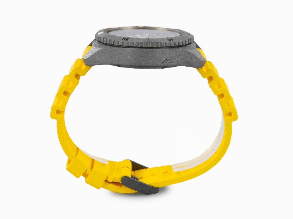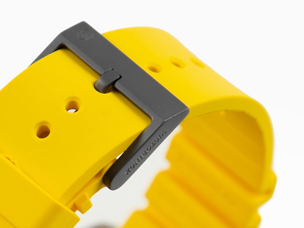 • El Victorinox Dive Pro es un reloj de buceo hecho de titanio que combina resistencia y estilo. Su esfera negra y correa de caucho amarilla le otorgan un aspecto moderno y elegante. Con un tamaño de caja de 43 mm y un movimiento de cuarzo analógico, ofrece precisión y funcionalidad. Además de indicar la hora, cuenta con calendario y tres agujas. Equipado con cristal de zafiro resistente a arañazos y una impermeabilidad de 300m, es ideal para buceo de saturación. Respaldado por una garantía de 5 años y fabricado en Suiza, es una elección confiable y sofisticada.