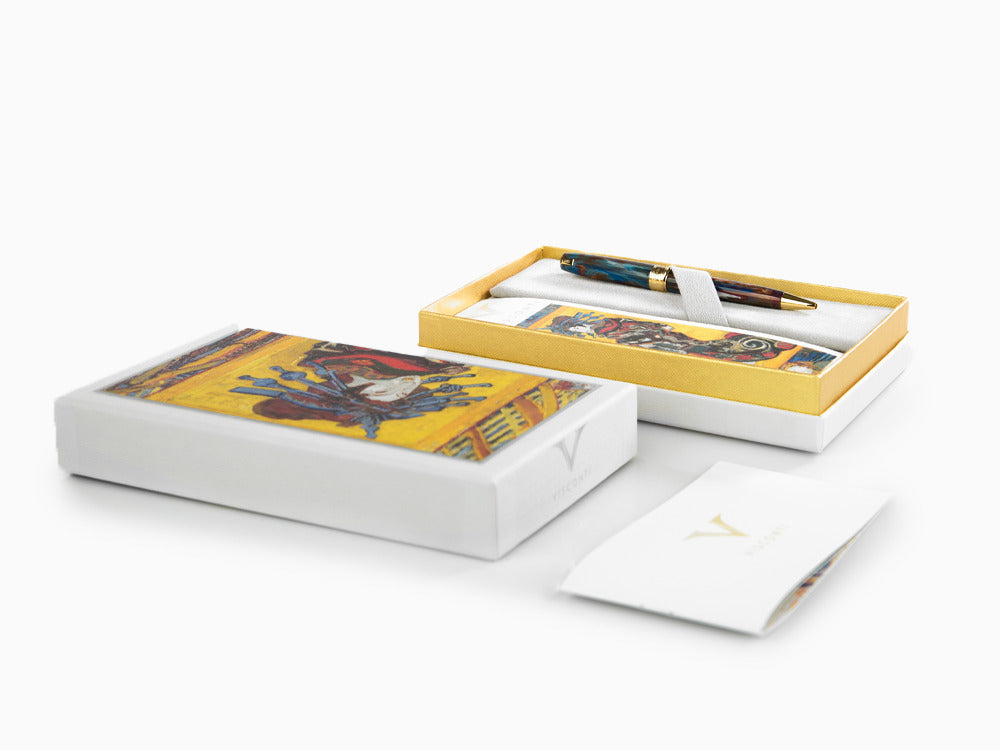 • El nuevo lanzamiento inspirado en Van Gogh es Oiran, una colección que rinde homenaje a la pintura homónima de influencia japonesa (1887). De hecho, el artista la pintó durante su etapa Japonisme, término que indica la atracción e interés de los pintores franceses del siglo tiempo hacia el arte del Sol Naciente. La pluma, en sus matices, reproduce algunos de los colores utilizados por Van Gogh: en el cuerpo los tonos son cálidos, mientras que en el capuchón son más fríos. El revestimiento metálico en oro amarillo es una combinación perfecta. El kit de la colección Van Gogh 2022 también rinde homenaje al cuadro que representa a una cortesana de alta alcurnia. «Uno no puede estudiar arte japonés sin volverse mucho más feliz y alegre.» Vincent Van Gogh.
