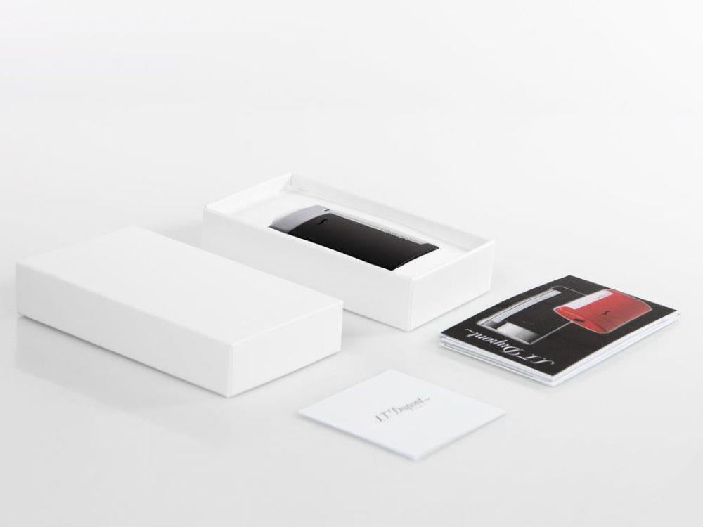 • Con tan sólo 45 gr de peso y 7 mm de grosor, S.T Dupont lo define como "el encendedor de lujo más fino del mundo". Este encendedor elegante y clásico en negro mate le permitirá encender cualquier cosa donde quiera que este.