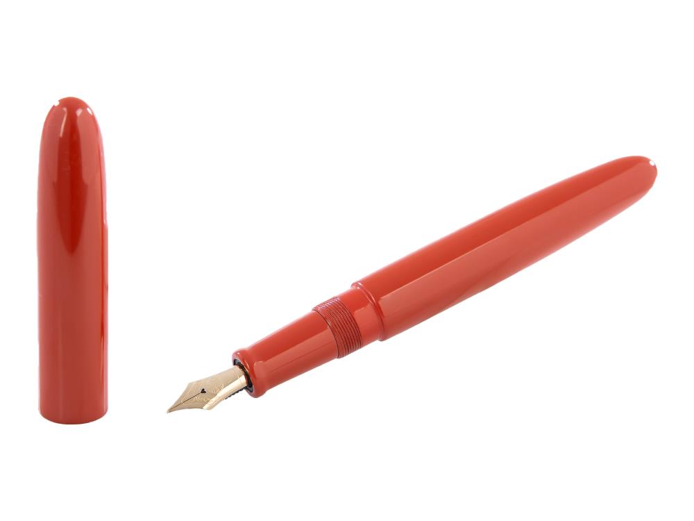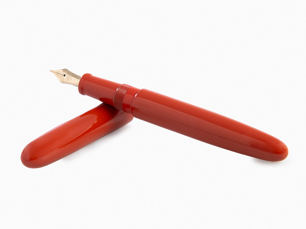• La Nakaya D-17mm Cigar Long Arai-Shu combina la tradición y el arte del lacado urushi japonés. Los japoneses describen colores claros con el término "Arai", mientras que el rojo oscuro se conoce como "Shu". Así, "Arai-Shu" significa el más brillante de los colores urushi. Esta pluma cuenta con un plumín de oro de 14k, ofreciendo una experiencia de escritura suave y refinada.