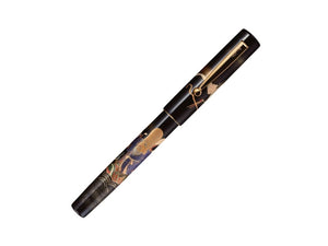• Para celebrar su centenario, Namiki ha creado estas originales estilográficas Yukari. Cada modelo está hecho en Maki-e y honra a uno de los 7 Dioses de la Fortuna, los más populares en Japón. Fukurokuju representa las tres virtudes del Taoísmo: la fertilidad, la salud y la longevidad. Aparece sentado en una tortuga, que es símbolo de longevidad, mientras sujeta una joya en su mano derecha. En el capuchón sale una grulla llevando un bastón.