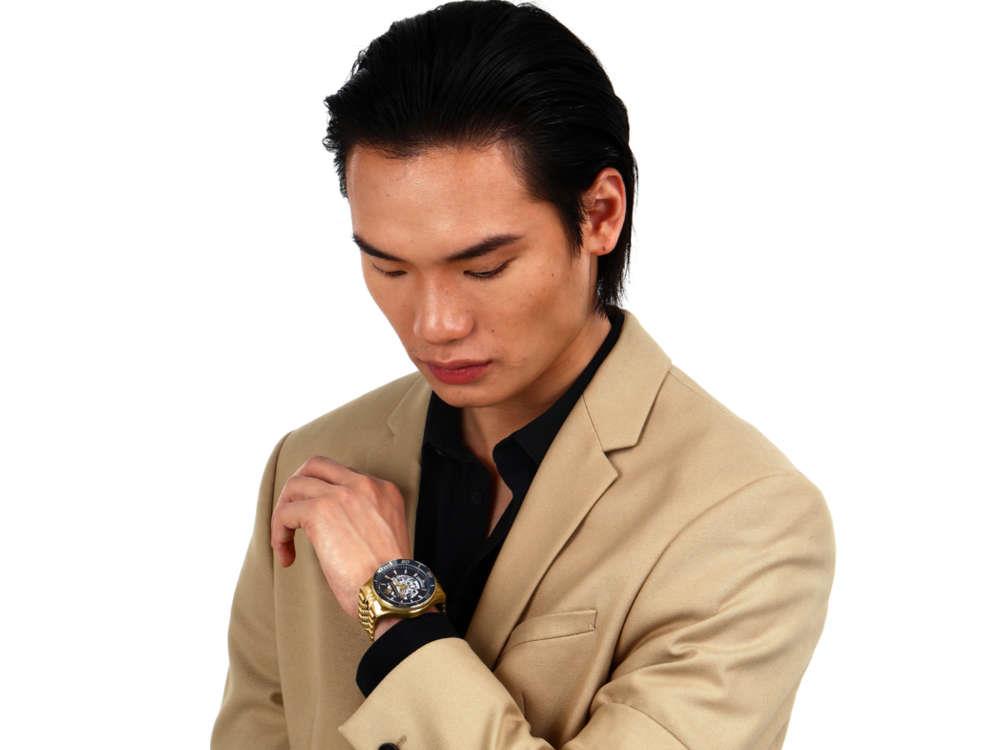 • El Maserati Sfida 44mm es el reloj automático ideal para aquellos que buscan la fusión perfecta entre lujo y funcionalidad. Con una esfera azul vibrante y detalles en dorado, este reloj destaca por su diseño elegante y deportivo. La caja de acero inoxidable, junto con su correa de silicona azul y acero, asegura resistencia y comodidad en todo momento. Su movimiento automático garantiza precisión sin necesidad de batería, ofreciendo una experiencia única para los amantes de los relojes de alta gama.