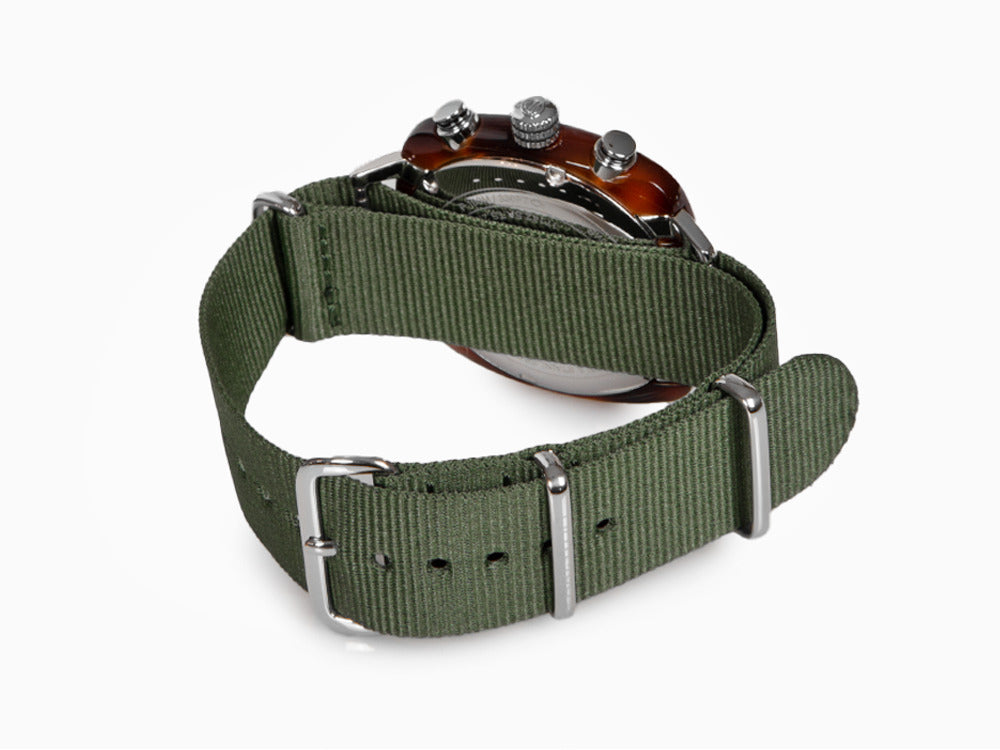 • El reloj Briston Clubmaster Sport Acetate ofrece un aspecto más deportivo con una caja de 42 mm y una escala taquimétrica para el modelo de cronógrafo, sin olvidar su correa NATO intercambiable. Con una esfera blanca y 2 contadores negros, este reloj se inspira en las líneas de los coches de carreras de los años 60.