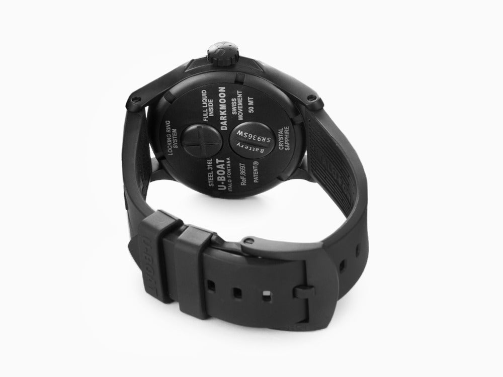 • U-Boat va más allá de los límites del diseño tradicional con los nuevos modelos Darkmoon Soleil de la línea Capsoil, donde se combinan funciones innovadoras con un estilo retro y diferentes tonos de esfera con un acabado Soleil en azul, verde, marrón o rojo. Como novedades técnicas podemos observar una corona roscada con sistema de doble seguridad que permite el ajuste de la función de tiempo, cristal de zafiro abovedado y un sistema innovador para cambio de pila rápido y recarga de aceite sin necesidad de enviarlo a fábrica, pero siempre manteniendo la esencia de la línea Darkmoon gracias a su movimiento electromecánico suizo completamente inmerso en un aceite que lubrica y crea una burbuja de compensación que amplifica la visión de las manecillas, haciendo que parezca más profundo y tridimensional.