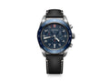 • Victorinox Swiss Army Chronograph combina la precisión suiza con un diseño deportivo y elegante. Equipado con el movimiento de cuarzo suizo Ronda 5030.D, este cronógrafo ofrece funciones de cronometraje preciso y taquímetro integrado en el bisel, ideal para medir velocidad y distancia.